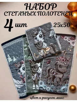 Полотенце банное стеганое лошадь набор 4 шт для рук и лица