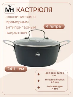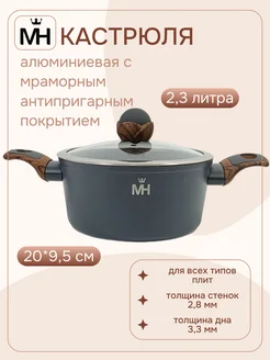 Кастрюля Grey обьём 2,3 л мраморное антипригарное покрытие