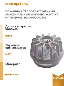 Пожарный тепловой извещатель 114-50-А3 НЗ 00-00002346
