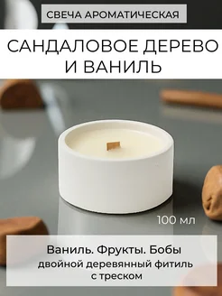 Свеча ароматическая деревянный фитиль, сандал и ваниль