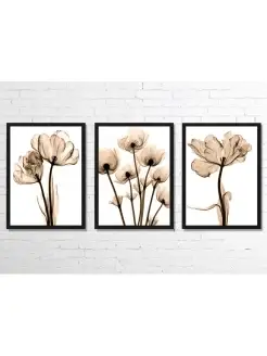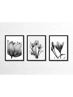 Набор картин в раме на холсте 45х60, "Черно-белые цветы"