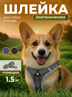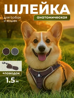 Шлейка с поводком для собак мелких и средних пород и кошек