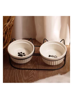 Миска двойная для животных с подставкой керамическая