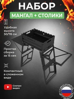 Мангал складной со столиком и полкою, для дачи и шашлыка