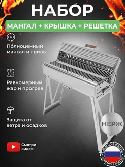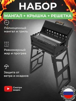 Мангал для шашлыка Складень с крышкой и решеткой для гриля