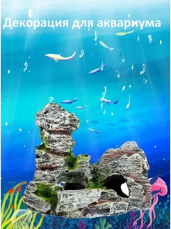 Декор аквариума, домик для рыбок затонувший грот Замок