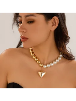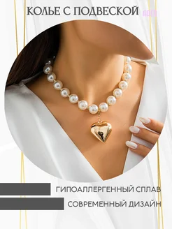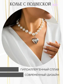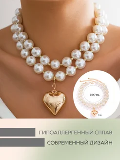 Колье-Чокер из жемчужных бусин с кулоном в виде сердца