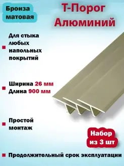 Т-Образный порог для пола, Алюминиевый 900х26мм 3 шт