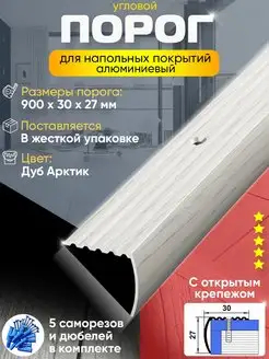 Порог для пола угловой алюминиевый на ступени 900х54 мм 3шт