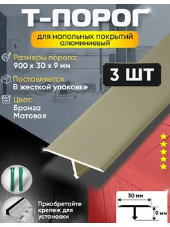 Т-Образный порог для пола, Алюминиевый 900х30мм 3 шт