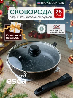 Сковорода с крышкой и съемной ручкой 26 см антипригарная