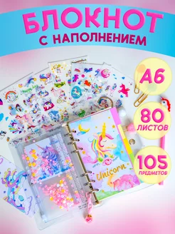 Блокнот А6 на кольцах в прозрачной обложке с канцелярией