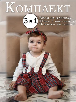 Нарядный боди с юбкой для новорожденных комплект с повязкой