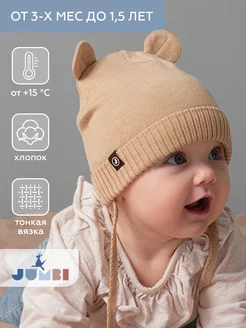 Шапочка с ушками для новорожденного летняя на завязках