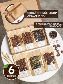 Орехи в шоколаде подарочный набор бокс с чаем