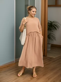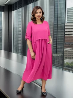 Платье длинное оверсайз в офис Бохо