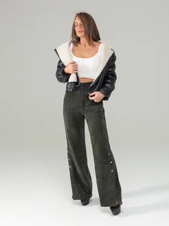 Брюки вельветовые трикотажные большие размеры со шлицей