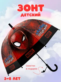 Зонт детский для мальчика Человек Паук красный со свистком