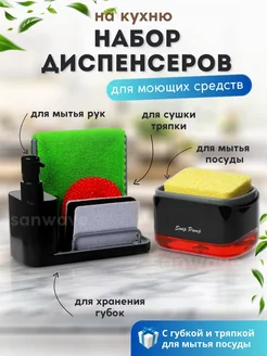 Набор диспенсеров для моющего средства на кухню с подставкой