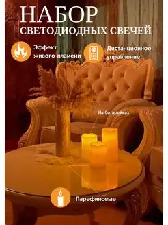 Набор светодиодных свечей 3 шт. с пультом на батарейках