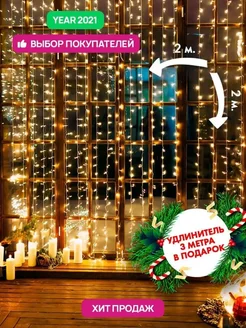 Новогодня светодиодная Гирлянда Занавес 2 на 2м