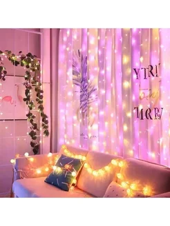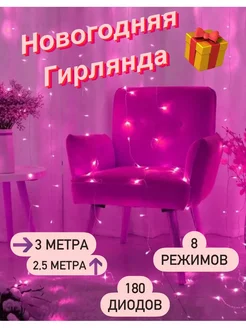 Гирлянда Штора( занавес )3на2.5 метра.Розовая