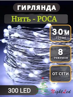 Гирлянда-нить "Роса" 30м Холодный Белый Цвет