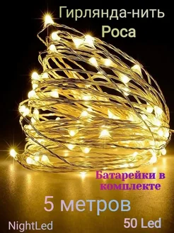 Гирлянда Роса 50 Led, 5м, на батарейках