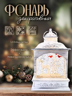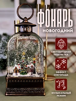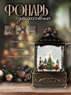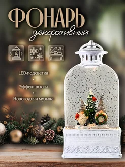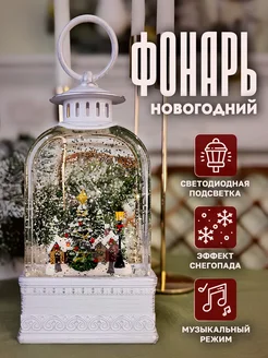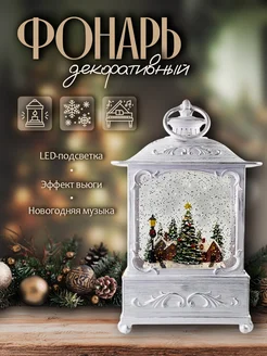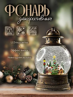 Новогодний фонарь со снегом Музыкальный Домики в лесу