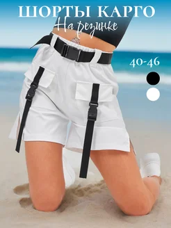 Белые шорты карго летние с разрезами на резинке. Бриджи