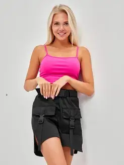 Черные шорты карго летние с разрезами на резинке. Бриджи