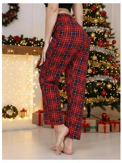 Новогодние брюки домашние пижамные в клетку хлопковые