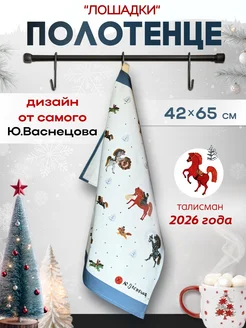 Новогоднее подарочное кухонное полотенце "Лошадки"