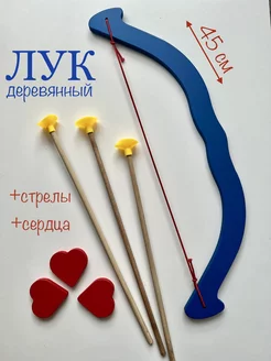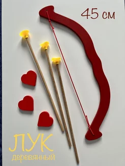 Лук Купидона деревянный со стрелами и сердечками