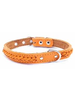 Ошейник кожаный двухслойный с косой, 53х2,5 см, ОШ 37-47 см