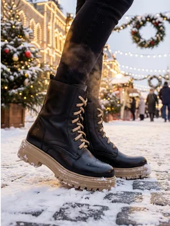 Ботинки на шнуровке зимние кожаные