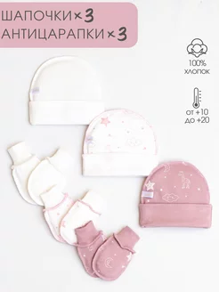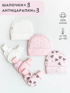 Шапочки чепчики и антицарапки для новорожденного