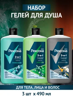 Мужской набор парфюмированных гелей для душа 2в1 490мл 3шт