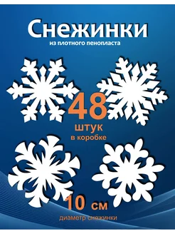 Снежинки из пенопласта d-10 см. 48 шт. Новогодние украшения