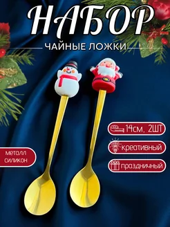 Новогодние чайные ложки дед мороз и снеговик 2шт