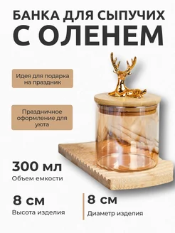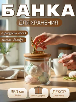 Банка для сыпучих бамбуковая крышка с фигуркой оленя 350 мл