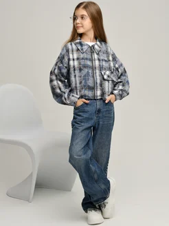 Рубашка укороченная в клетку для девочки