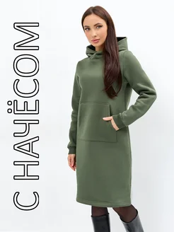 Платье худи с начесом на флисе теплое