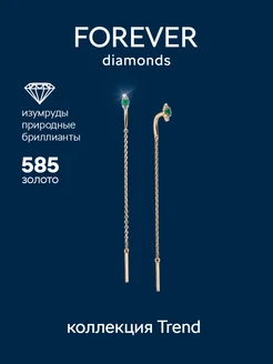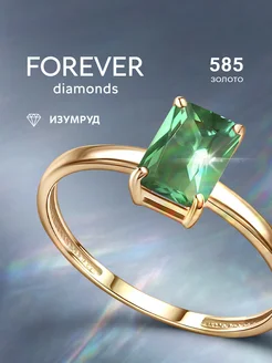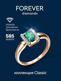 Кольцо золотое 585 c изумрудом и 10 бриллиантами