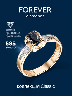 Кольцо золотое 585 c сапфиром и 22 бриллиантами