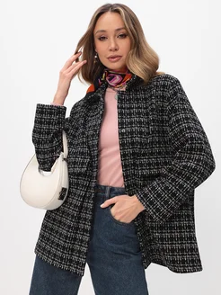 жакет черно твид с большими карманами