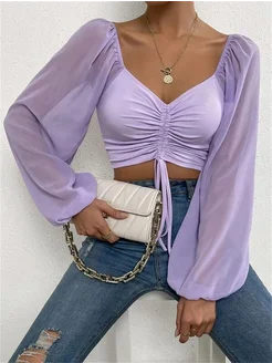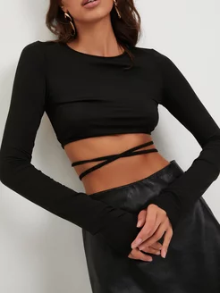 Вечерний кроп топ с длинными рукавами в рубчик 2yk