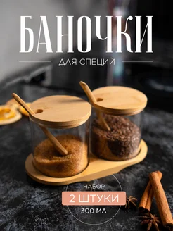 Банки под сахар и соль стеклянные с крышкой и ложкой, 2 шт