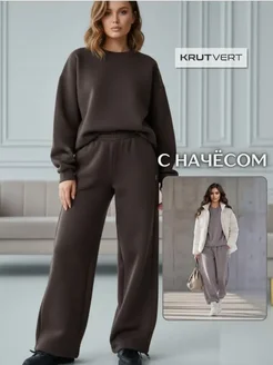 С начёсом джоггеры теплые на флисе зимние, с лампасами