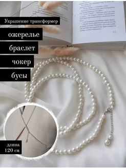 Бусы чокер из жемчуга длинные с подвеской